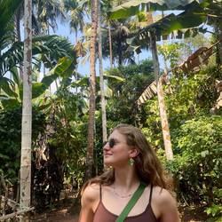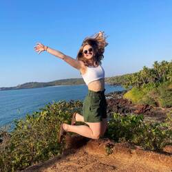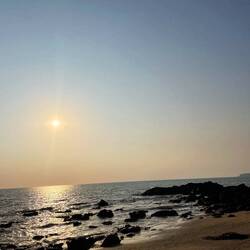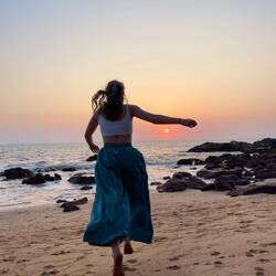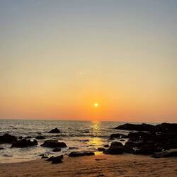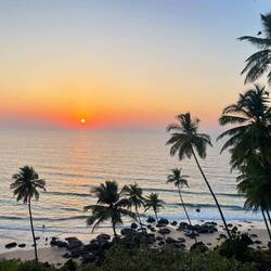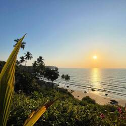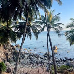 In the afternoon we headed to the Cabo de Rama fort that Dora had looked up to watch the sunset. First we climbed up to the fort and had an amazing view over the coastline and the Cabo de Rama beach. We walked around a bit and kept finding the prettiest and most calming views. We went down to Pebble beach which was one favorite - we were surrounded by palms, rocks and boulders. We reached it by descending a couple of stairs, which we had to climb on our way back! We got a bit out of breath but we surpassed some Indians that looked like they are going to pass out right about now🫠