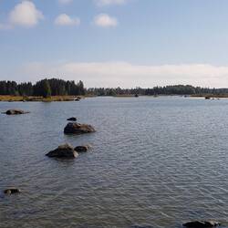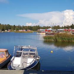 ...und der vorgeschlagene Platz war ein Träumchen...Hafen und Badestelle...mit zig kleinen, roten Bootsschuppen inklusive davor liegenden Booten...mehreren Stegen, ein Eiscafe mit den größten Kugeln der Welt...und viel Ruhe und Wasser drum herum...Danke liebe FinninBaca lagi