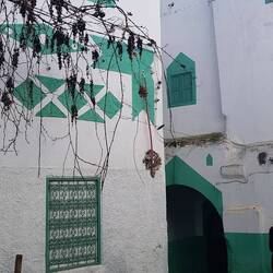 Ok, warum nicht und es war dann auch ein Glücksfall. Nourdine führte uns durch den sehr alten Basar und die Medina. Früher wurde Ouezzane von sehr vielen Juden bewohnt, die friedlich mit ihren moslemischen Glaubensbrüdern Tür an Tür gelebt hatten. Davon zeugte auch ein vis-a-vis von Moschee und Synagoge. Als Israel gegründet wurde, verließen die Juden die Stadt und heute zeugen nur noch überwiegend verlassene oder verfallene Häuser von dieser Zeit.