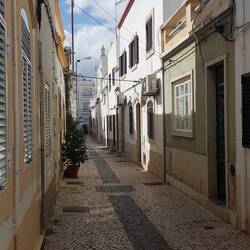 Also weiter die kurzweilige Fahrt an der Küstenlinie entlang nach Fuseta, mit Strandspaziergang und nun endlich Cafetrinken bei Sonnenschein an der Lagune, mit bestem Ausblick auf Wasser und Strände. Wir stellten fest: Es ist insgesamt wesentlich leerer als letztes Jahr, aber trotzdem sind alle Stellplätze ausgebucht. Nach der kurzen Pause cruisten wir nach Olhao, das wir letztes Jahr noch nicht besucht hatten.