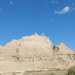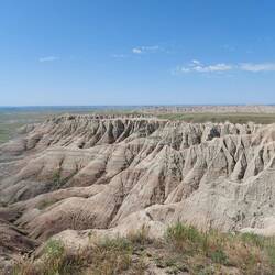 Morgens hab ich mich nochmal so richtig geärgert über den Preis und die Gegenleistung die man auf dem Campingplatz erhält. Für knapp 50 Dollar erhält man eine Ausbuchtung auf der Straße, das ist der Platz. Bis spät in die Nacht und ab Sonnenaufgang fährt alles im Meterabstand an deinem Fahrzeug vorbei, da es kein Stromanschluß gibt laufen die Motoren der Wohnmobile im Standgas oder Generatoren laufen die ganze Nacht damit die Klimaanlagen Saft haben. Die anderen Campingplätze waren weitläufiger da hat man das nicht gehört. Die Krönung war die sanitäre Situation, über die Powerdusche für 1 Dollar hatte ich schon geschrieben, aber an Porzellan waren genau 2 Stück für rund 50 Plätze vorhanden. Da kann man sich ja vorstellen wie die ausgesehen haben. Ok, weiter geht die Fahrt und die eine oder andere Gesteinsformation mußte ich noch ablichten. Außerdem habe ich gemerkt, ich hab mich am Vortag reingeschmuggelt. Ich bin so ne Cowboy Piste (Gravel Road) direkt von der Rakete zu den Badlands gefahren und da gab es keine Kontrolle ob man einen NP Pass hat. Bei der Ausfahrt hab ich dann die Häusschen gesehen, da hat aber keiner mehr gefragt.