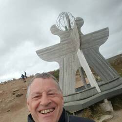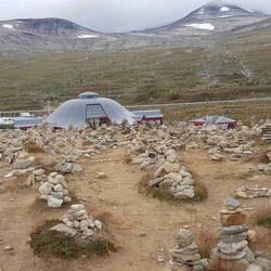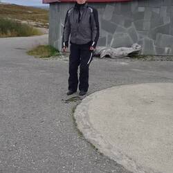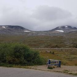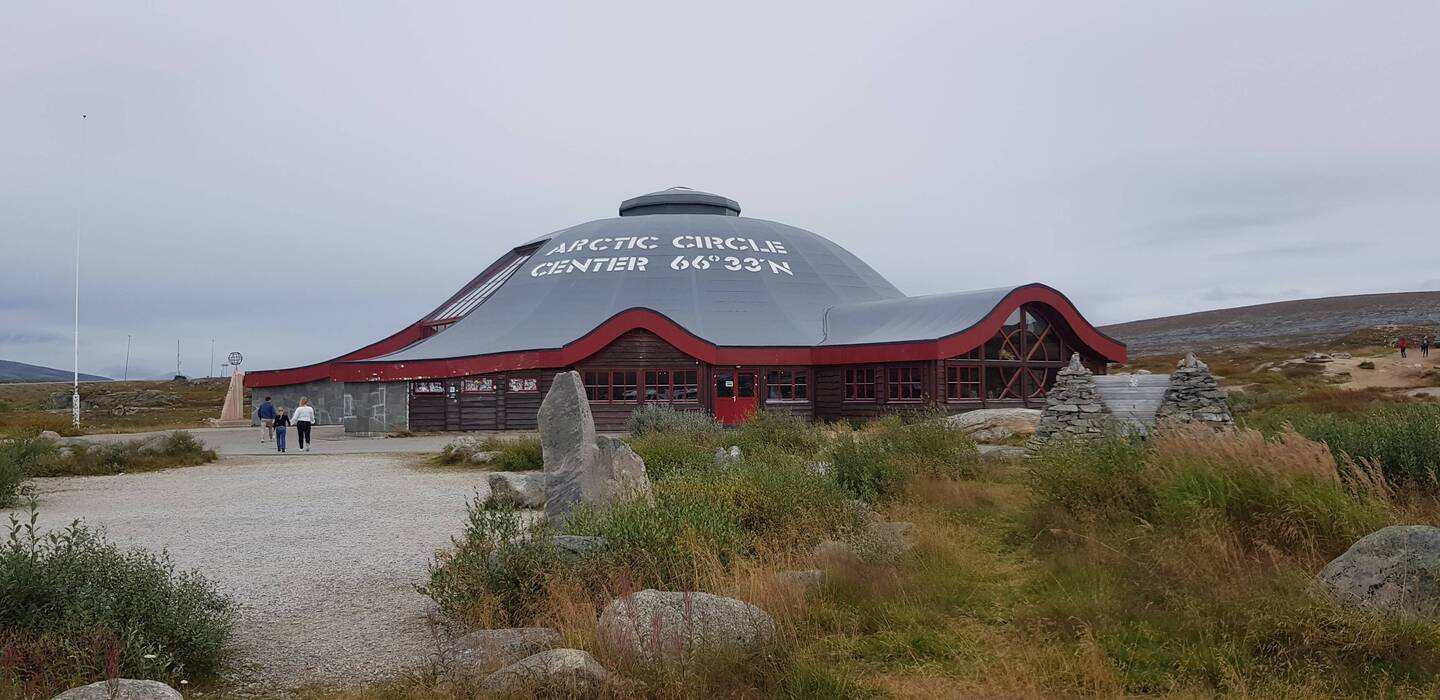 Soeben haben wir den Polarkreis überfahren (er hat das überlebt) und überschritten Vor dem Polarkreis waren 10Grad,danach 15Grad.👍😉🗻❄