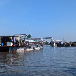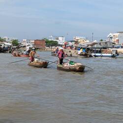 Le Mékong, poumon de l'Asie du Sud-Est, fleuve commercial, où les échanges se font à quai mais aussi sur l'eau sur les marchés flottants.