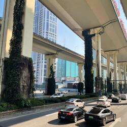Die meisten Autos fahren hier elektrisch, daher ist der Straßenlärm kaum wahrnehmbar. Ich kann mich an den 157 Wolkenkratzer in dieser grünen Dschungelstadt kaum sattsehen.