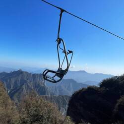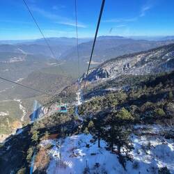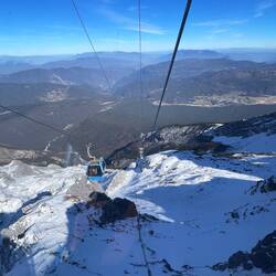 Man benötigt einige Seilbahnen und Shuttles bis man oben ankommt.
