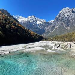 Es entsteht durch die Schmelzwasserströme des Jade Dragon Snow Mountain
