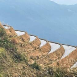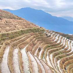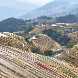 Im November sind die Longsheng-Reisterrassen leer, da der Reis bereits geerntet wurde und die Landschaft ist aufgrund der Winterkälte, des möglichen Schneefalls und der trockenen Felder weniger üppig, aber landschaftlich trotzdem attraktiv. Die Sonne ließ sich heute nicht wirklich blicken, aber schließlich bin ich in der Nebensaison unterwegs. Solange es nicht regnet bin ich happy! 🤗