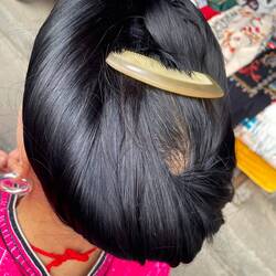 Der Knoten vor dem Kopf zeigt an, dass eine Frau verheiratet ist. Manche hier haben daher Haare auf dem Kopf, die sogar 2,6m lang geworden sind. Eintrag Guinnessbuch der Rekorde ☝🏻