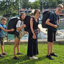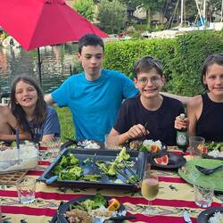 Kids also manage to find a few jobs to replenish their travel budget there, selling their magazine 'la fourmi', bake sale by the club house, empty Grand Pa's garage, revamp some old chairs, etc. Oscar and Nora Skye are particularly motivated!Read more