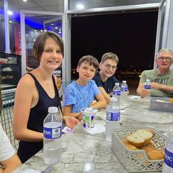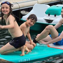 Paddle/ pedalo race, tennis, triathlon training, dives, fishing, water skiing, etc. So much fun for the kids there ... while I finish up admin, homeschooling preps, and packing!!!