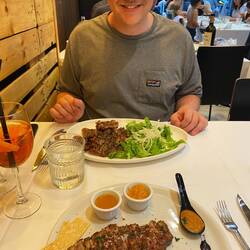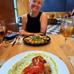 Ds erschte Mau i dene Ferie, wo mr vorem Wecker ufgstande si. Wiu mr gschid mitdenke, hei mr entschide, im Hotel ds zmörgele, statt chli vrlore im Vorort ufere Suechi nach eppisem ds Foode ungerwegsLeggi altro