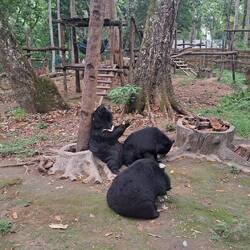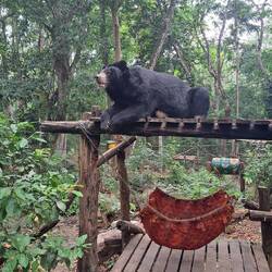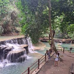 About an hour later, I arrived and parked up. I had to get one of the electric buggies over but eventually I was there. I changed into my swimsuit and started hiking through the jungle. As a huge bonus to seeing a cool waterfall, on the trek was an entire bear sanctuary where you could see bears that had been rescued up close. There are 2 main bears in Laos known as "Sun Bears" and "Moon Bears" because of their distinctive yellow and white crescents on their chests. Unfortunately, bears in Laos are poached so they need to be kept in sanctuaries instead of roaming free which is a shame but allows people to see bears up close.