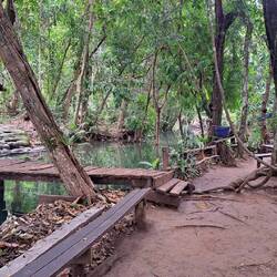 There was a pathway up the side of the main falls to the spring at the top which I very sweating ran my way up. I could have got a small boat to the actual spring but decided I'd go for a dip instead. The day actually wasn't as warm as it had been recently which meant the water was quite fresh and cold but it was nice regardless. There was a nice little swing that sat right above the water where small fish nibble your feet which I couldn't help but laugh at the feeling of. I dried off and headed back down the otherside and grabbed a smoothie at the bottom, I was gonna swim in another swimming hole but honestly it wasn't warm enough for me to jump back in after getting changed already. I walked past the bears again and spent a while longer watching them do their thing before heading out.