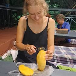 After vibing for a while, we snuck past the house and made our way down the other side of the hill and said goodbye to Robert heading back to our hostel. It was now time for Michelle to show me how to cut up a mango properly given my terrible history - which in all fairness was much much better than my attempt. We enjoyed the mango and honey then headed to sleep.En savoir plus