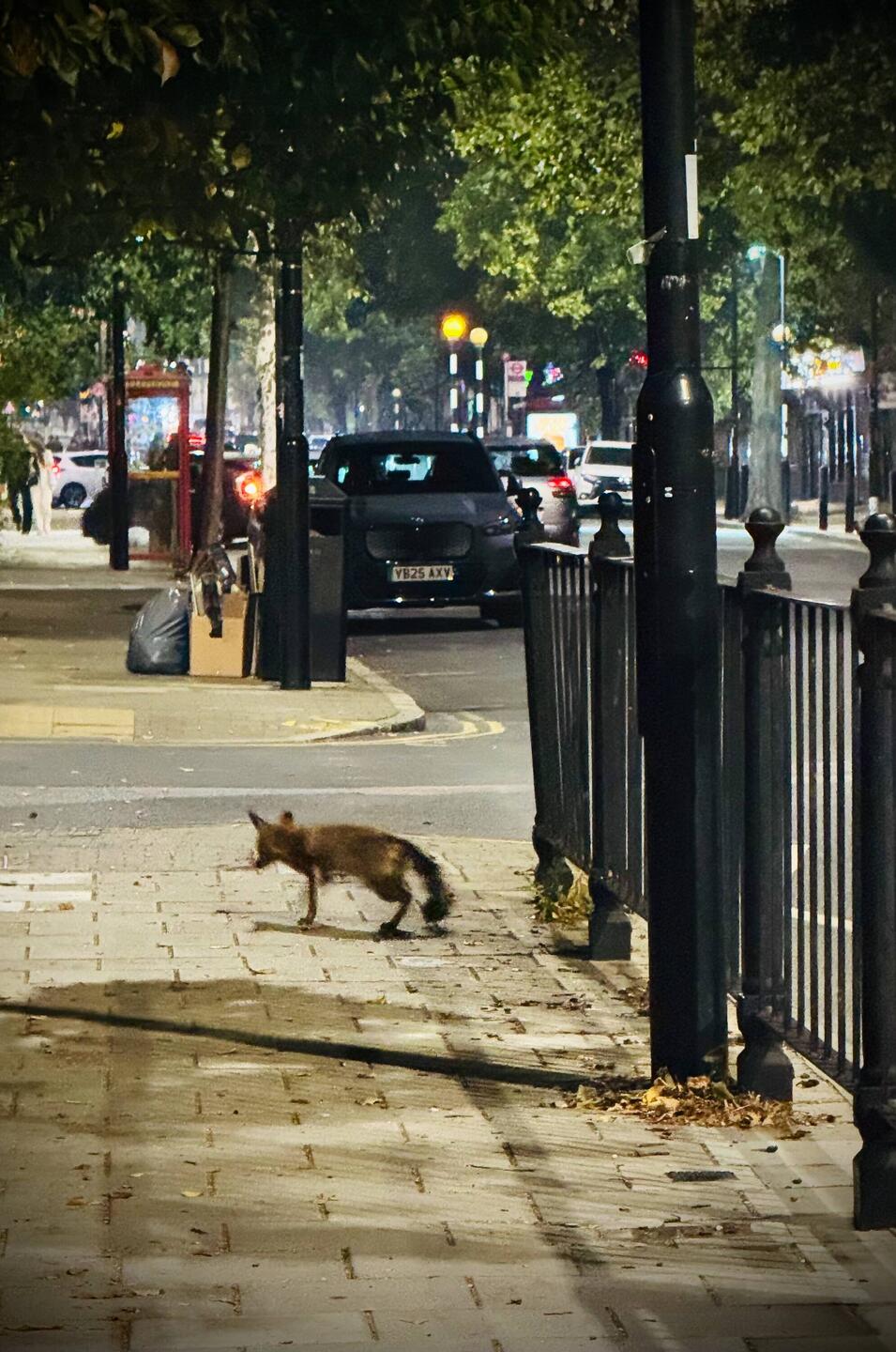 Ein einsamer Fuchs 🦊 stromert durch die Strassen von London.