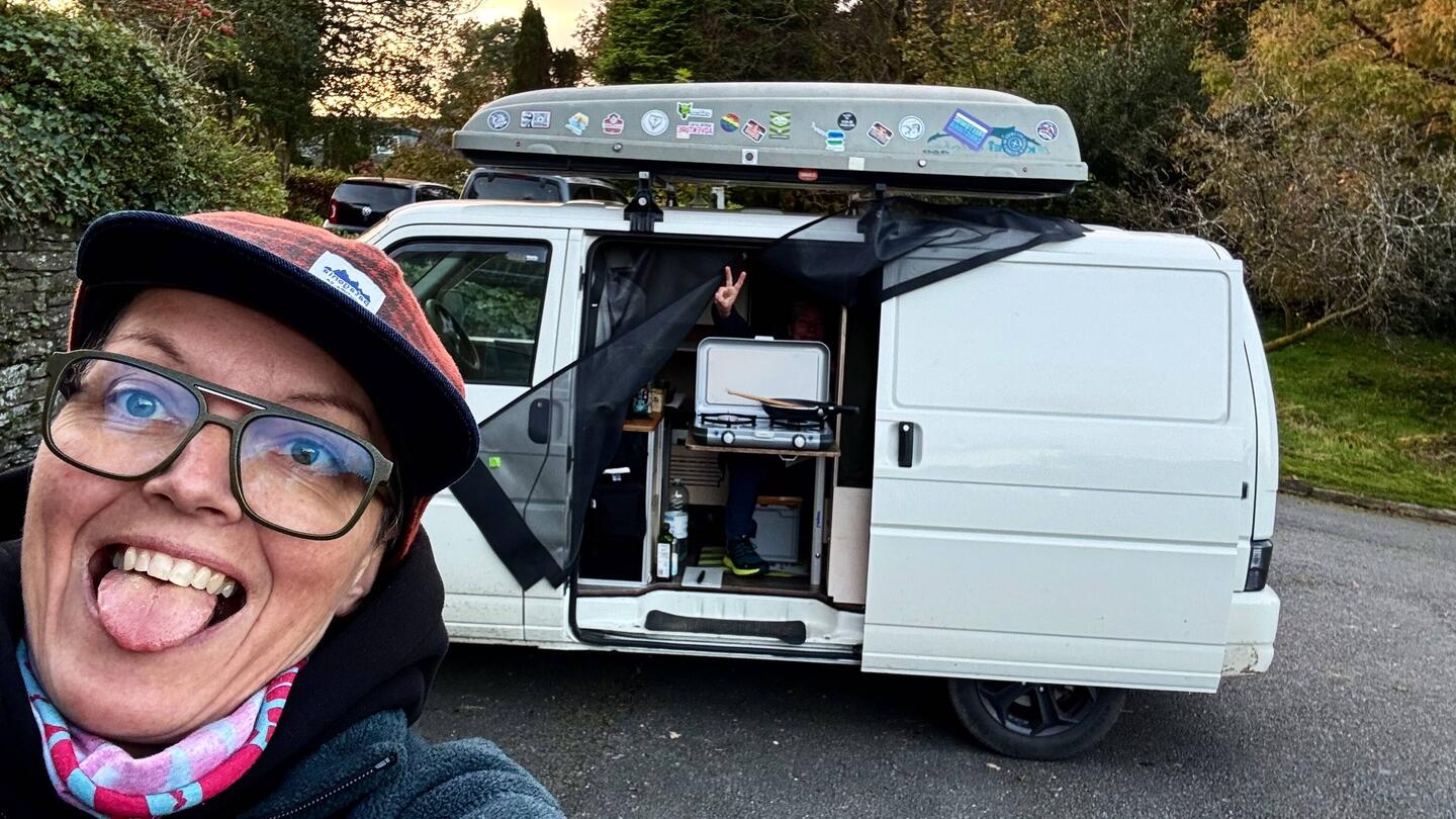 Frido steht sicher auf einem bewachten Parkplatz in Manchester.