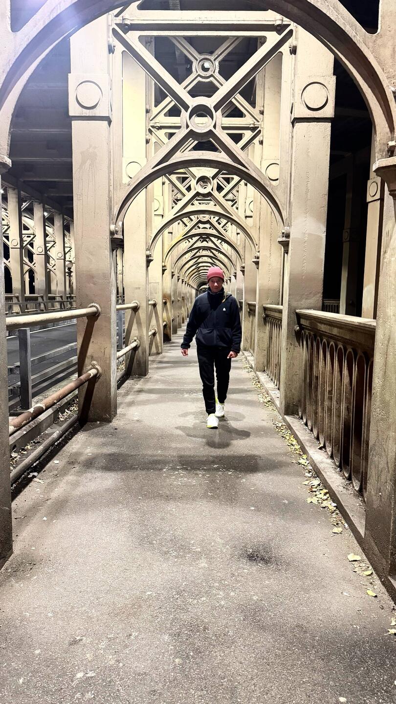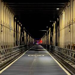 Oben fahren Züge und in der hübschen Traversenkonstruktion Autos, Radfahrer 🚴 und Fußgänger 🚶.