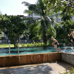 Unser erster Tag in Bangkok hat gut geklappt! Zwar sind wir erst um halb zwei ins Bett und haben dann den halben Tag verschlafen aber mit Dachterrasse, Pool, klimatisierten Apartment und "kastln" fürBaca lagi