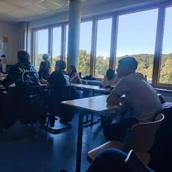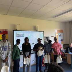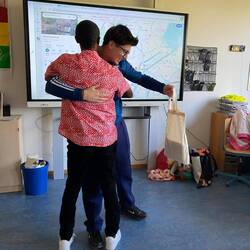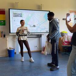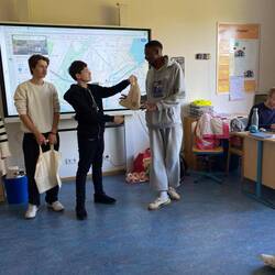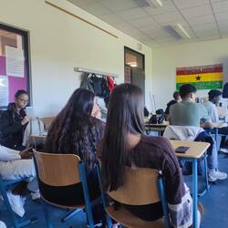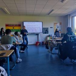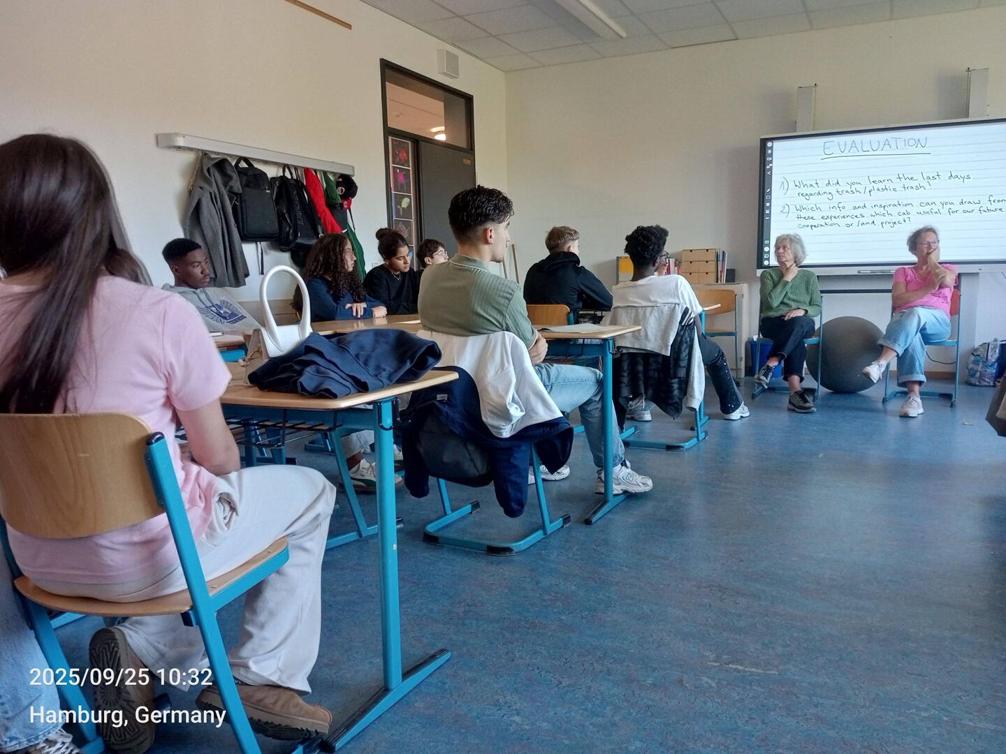 Crown Prince Academy student and Esther Bejarano Schule in class discussions based on their trip to the MVR recycling center in Hamburg .