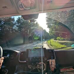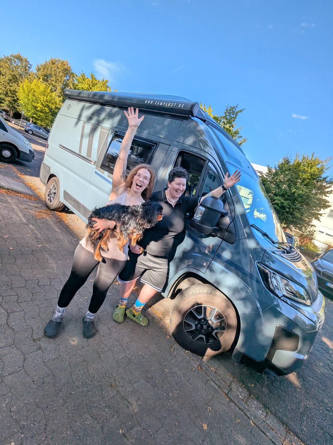 Endlich auf der Straße! Nach 10 Stunden packen, Blumen gießen, Wäsche waschen, Haus putzen, sind wir nur 6 Std zu spät auf unserer ersten Etappe. (Sind wir jemals pünktlich? 😂)