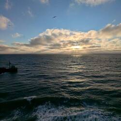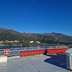 Bereits am Abend erreichten wir den Fähranleger Svolvær. An Platz 2 in der Reihe stellten wir unseren Camper ab und genossen den Sonnenuntergang am Hafen. ✨