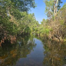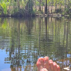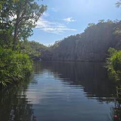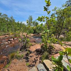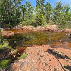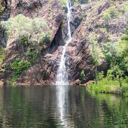 Die Gegend hier ist wunderschön. Viele Billabongs und Wasserfälle.