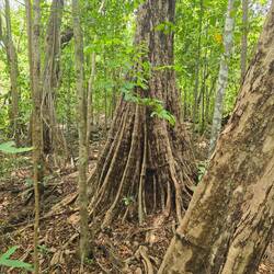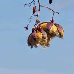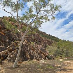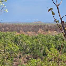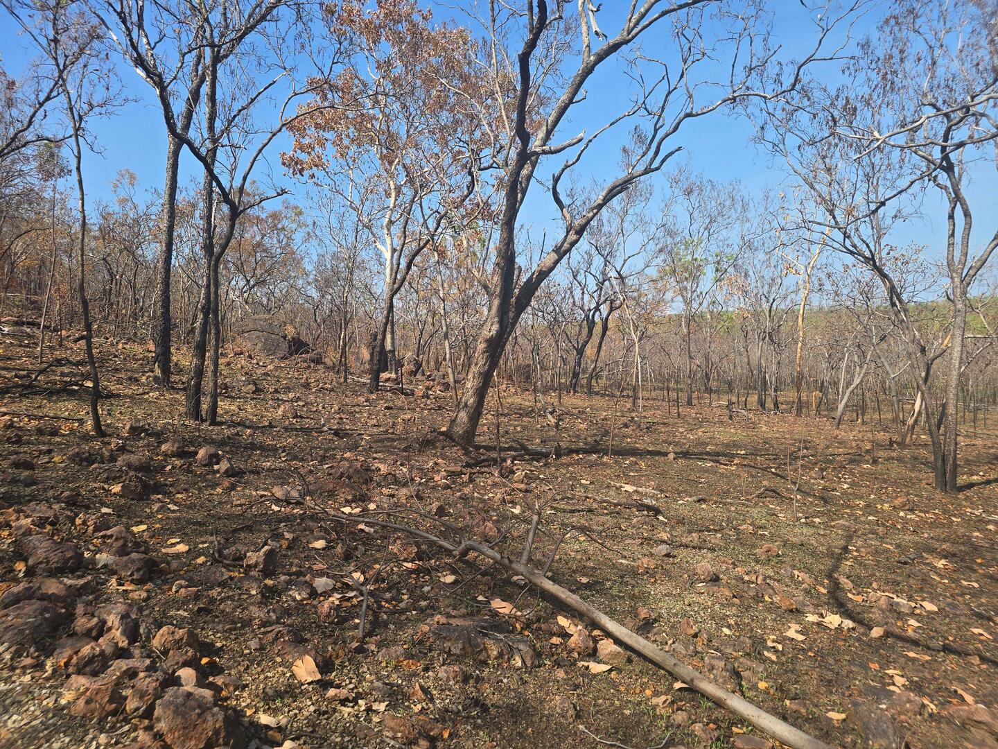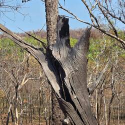 Viele verkohlte Bäume gesehen. Die tiefschwarzen Stämme treiben oben teilweise wieder aus. Manche Samenkapseln öffnen sich erst wenn es gebrannt hat.