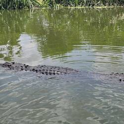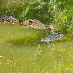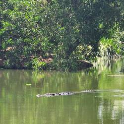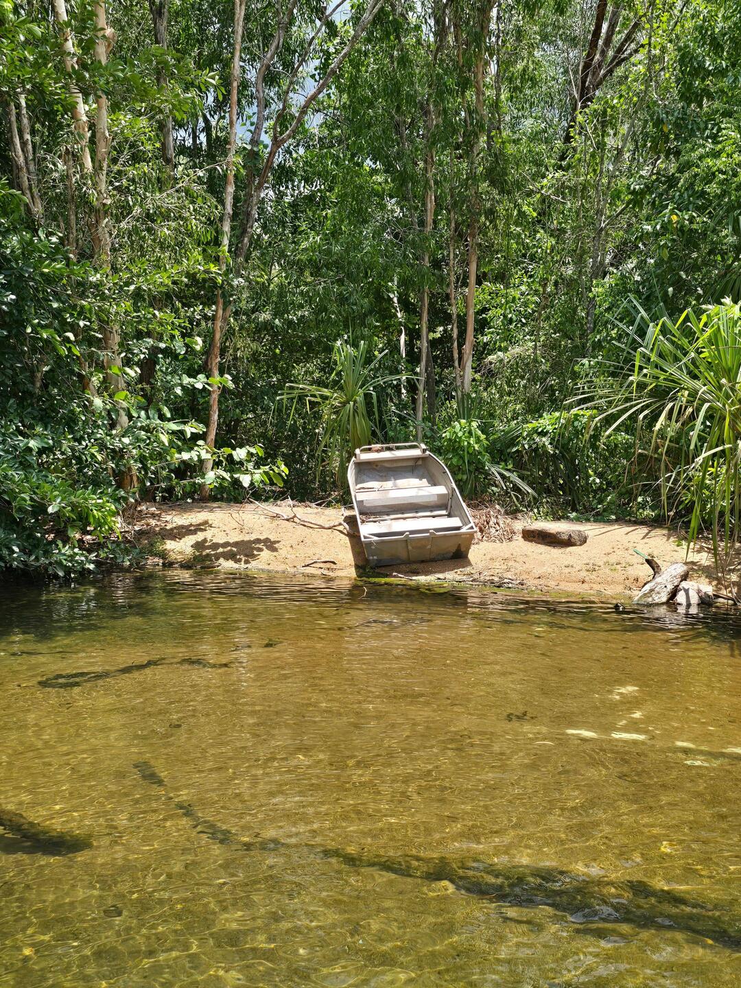 Im Darwin River Krokodile gesucht mit dem Boot. Und gefunden 🫣