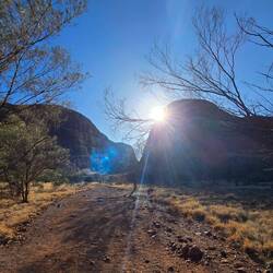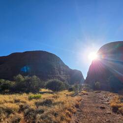 Uluru bei Sonnenaufgang um 5 Uhr früh.