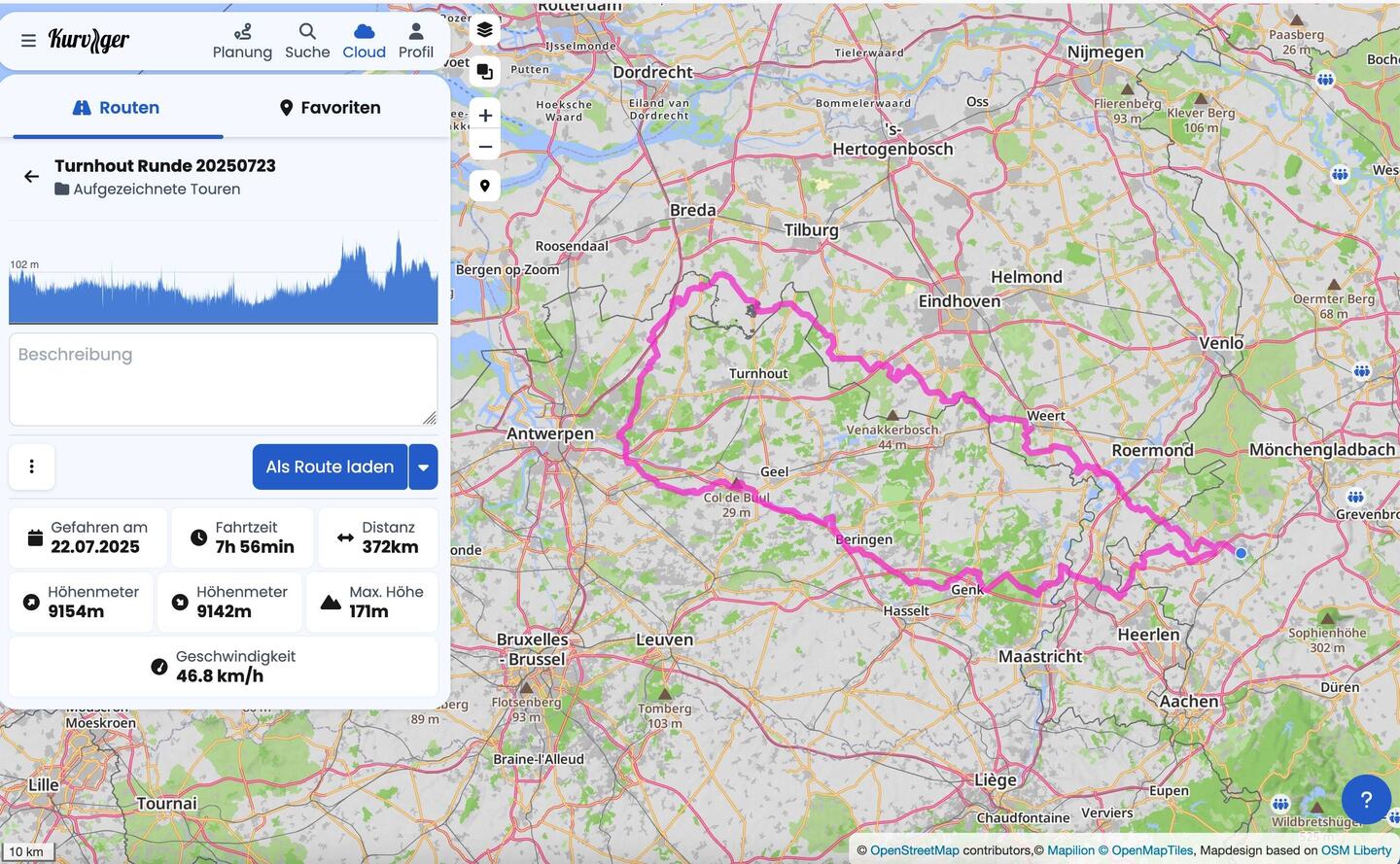 Eine Tour entlang der niederländischen Grenze und zurück entlang der belgischen Grenze.