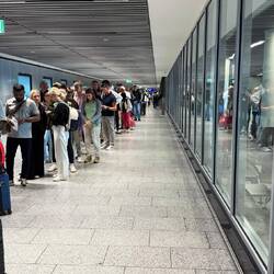 Doch gleich die erste Herausforderung: neue Grenzpolizei-Kontrollen – der Flughafen dafür kaum ausgelegt. Ergebnis: Schlangen soweit das Auge reicht, in beide Richtungen. 🛂😅