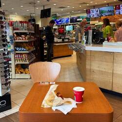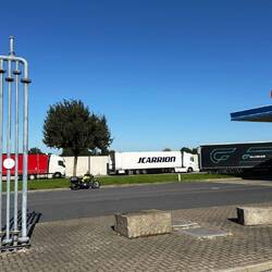 Tankstopp, Cappuccino und was fettiges leckeres, ca 11Grad…