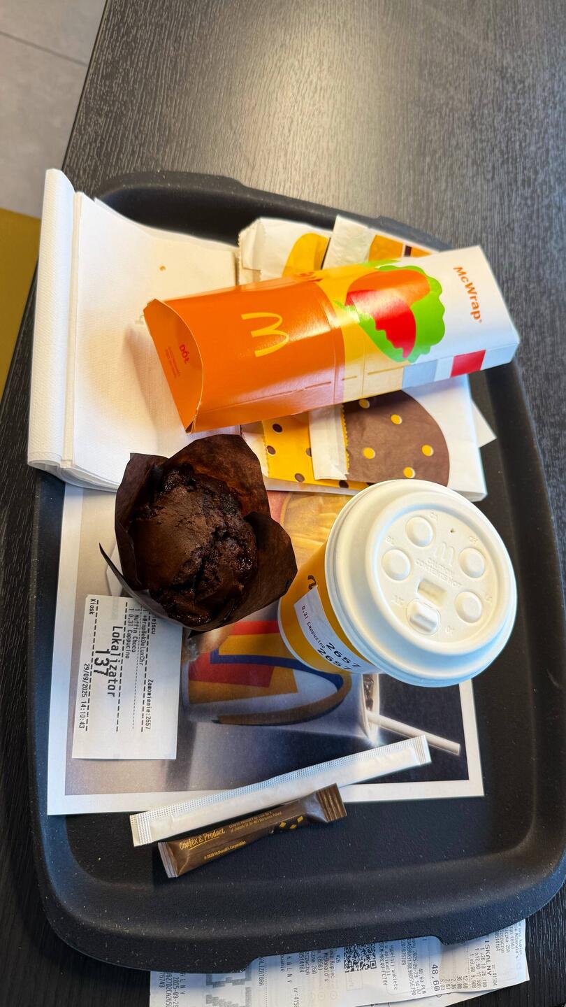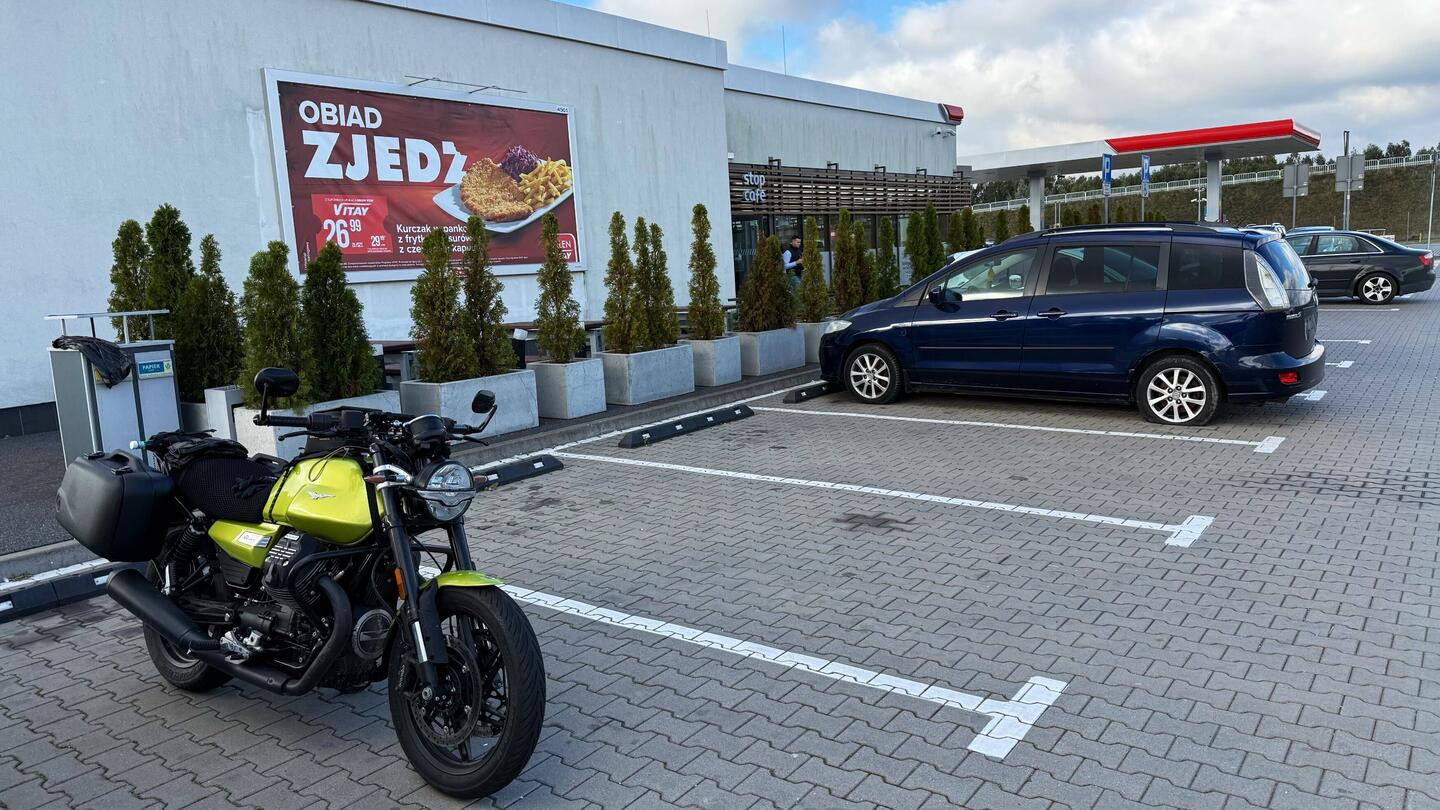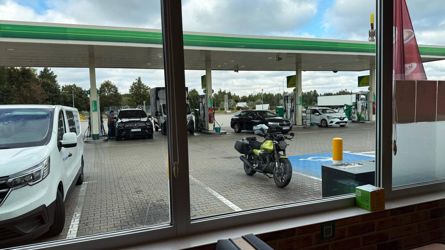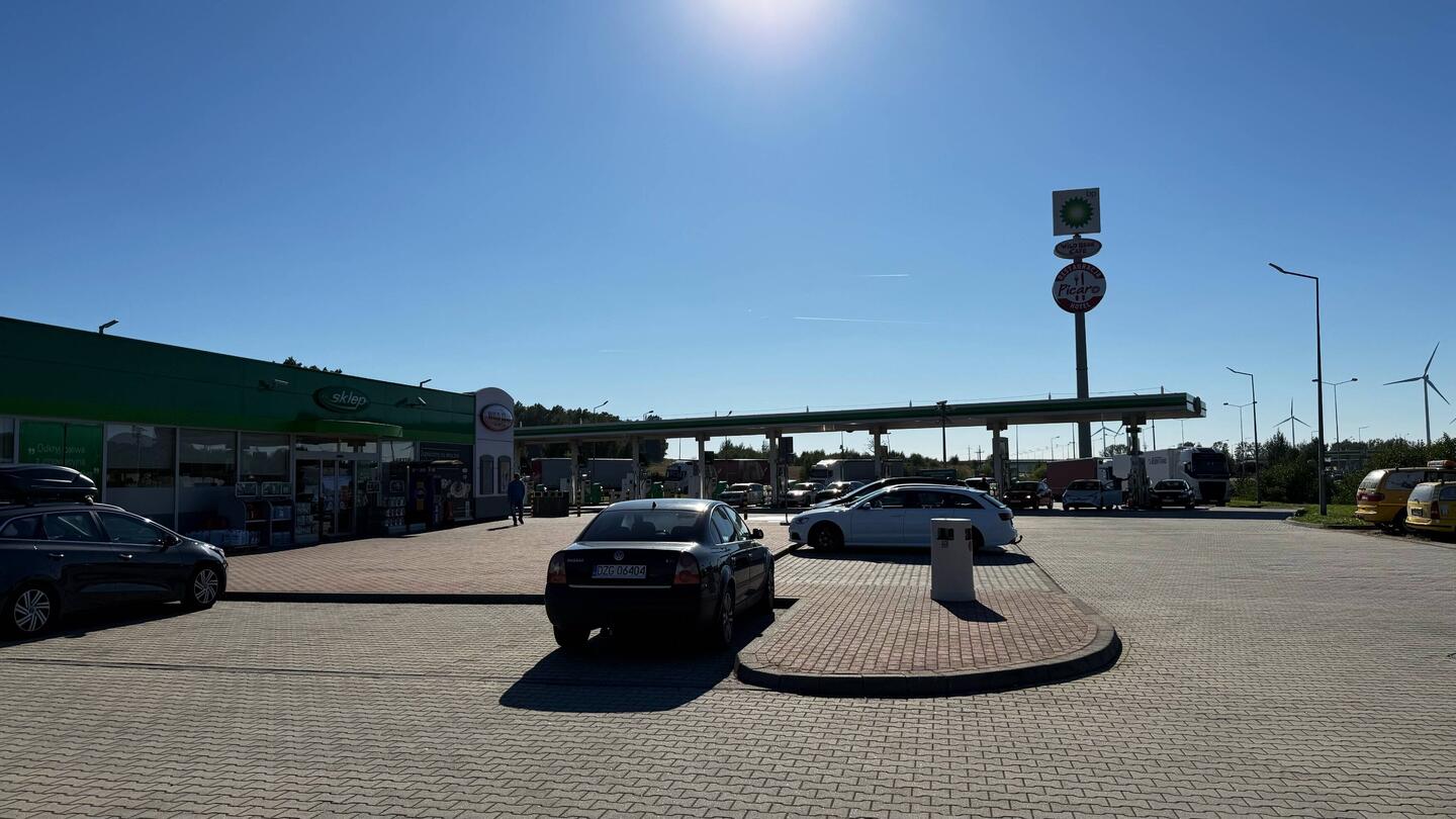 1. Cappuccino Stopp, noch mal nachgetankt. Noch ca. 50km bis zur polnischen Grenze. E10 Preis an der AB wie immer unverständlich…
