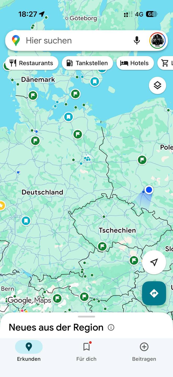 Bin gut durchgekommen, 746km geschafft trotz der späten Abfahrt und etwas Stau an 18:00 hier in der Ecke.