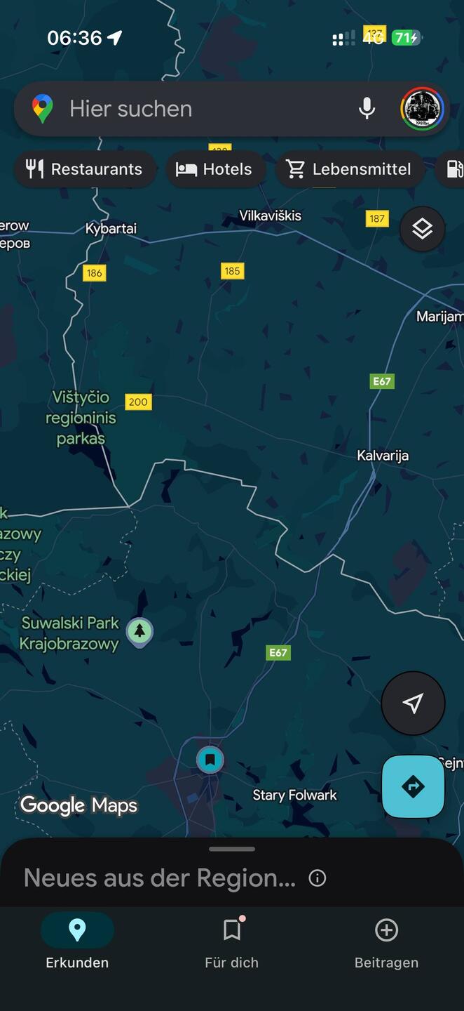 Sicher und gut bei ca. 8 Grad im Kaunas in Litauen angekommen. 720km gefahren. 1 Stunde Zeitverschiebung!