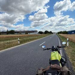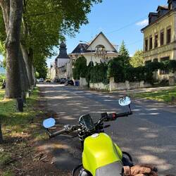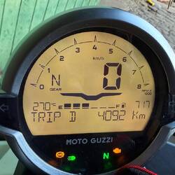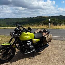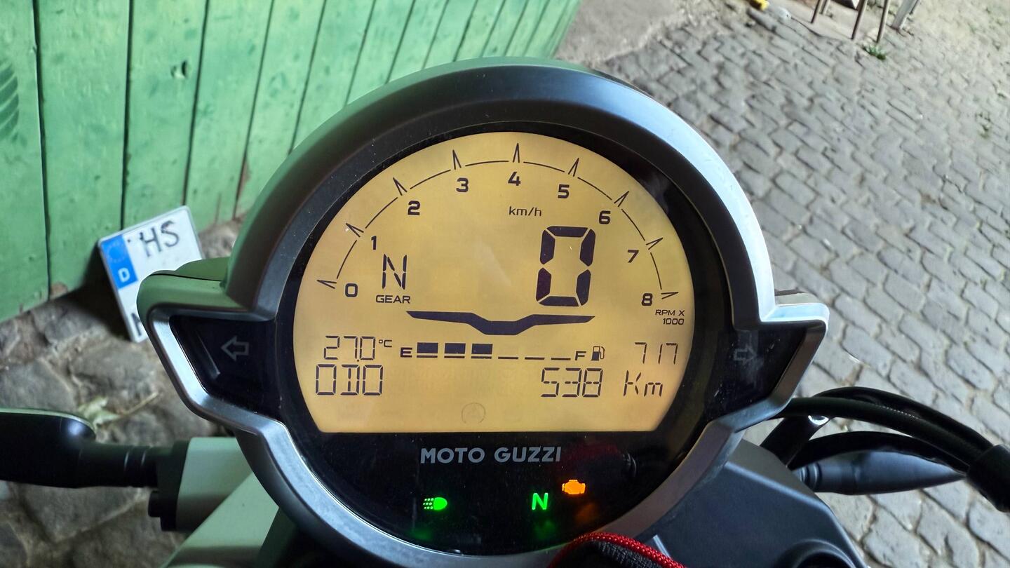 Die Guzzi ist nicht mehr neu, hat jetzt 538km drauf. Heute 409,2km gefahren.