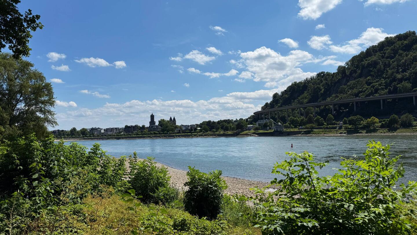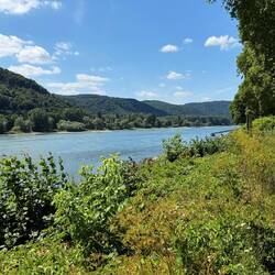 Bin schon seit ein paar Kilometern an Rhein, leider auf der falschen Seite, Schnellstraße und Eisenbahn, leider nicht möglich für einen schnellen Foto Stop!