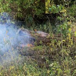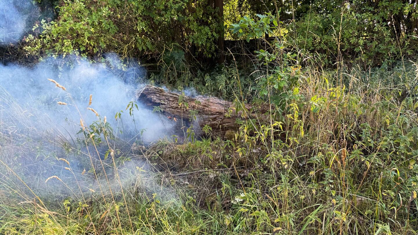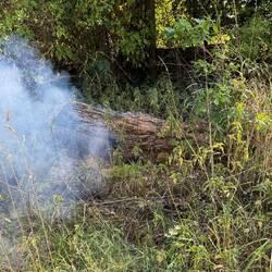 War mit JJ spazieren. An der Rur. Dann sehe ich Rauch, dachte erst Barbecue. Wasser dann doch keins sondern Gras und ein marode Baumstamm haben gebrannt.
