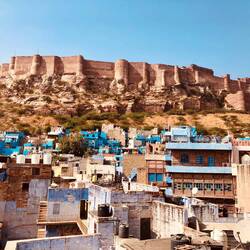 Mit unserem Fahrer machen wir uns von Udaipur auf die 280 km entfernte Stadt Jodhpur und kommen nach rund 5 Stunden Autofahrt dort an.