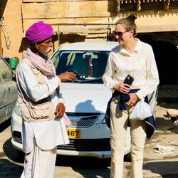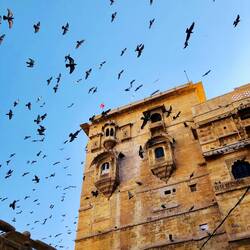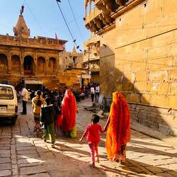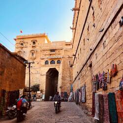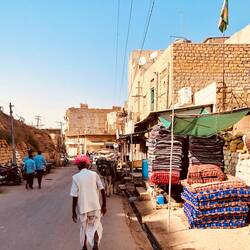 Wir haben uns jetzt auf Erkundungstour nach Jaisalmer ganz im Nordwesten begeben und unser Fahrer bringt uns nach 5 Stunden Fahrt und rd. 300 km sicher an unser nächstes Etappenziel.