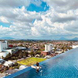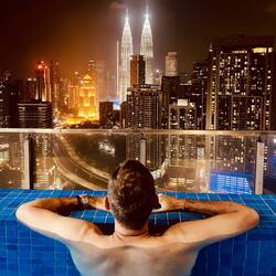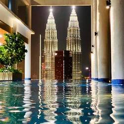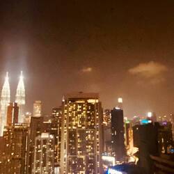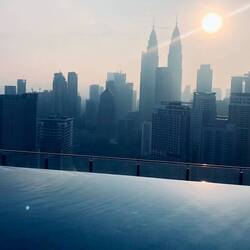 Hier in Kuala Lumpur genießen wir erst einmal die Aussicht aus dem 35. Stockwerk in unsererLes mer