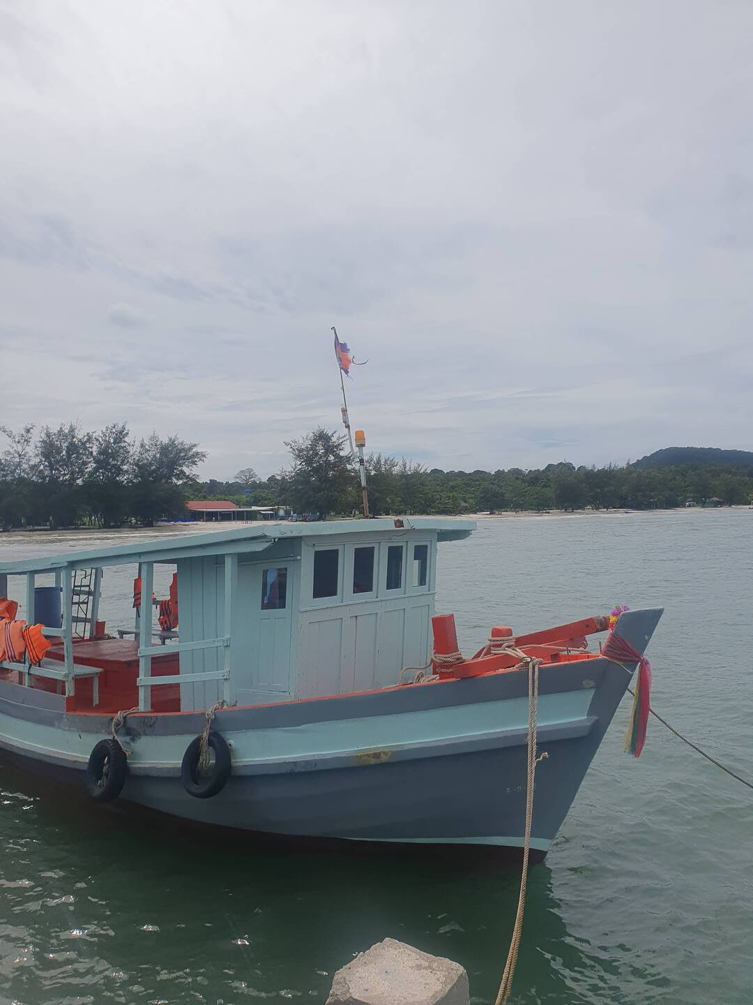 Sympathique serveur qui me ramène au quai en bateau alors qu'il y a de la houle.