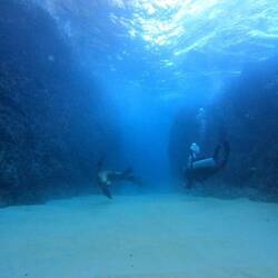 Finalement, j'ai mis une bouteille d'air sur le dos pour aller voir en dessous des 24 mètres. C'était tout aussi bleu et beau.