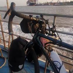 Même pas besoin de changer et sortir le vélo du car cette fois-ci. Le car prend un bac. J'aurais pu tester aussi le télésiège 😅