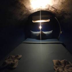 Nuit courte, chambre horrible dans un dortoir de 8 sans fenêtre, humide et avec la climatisation sur moi.