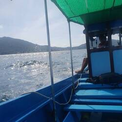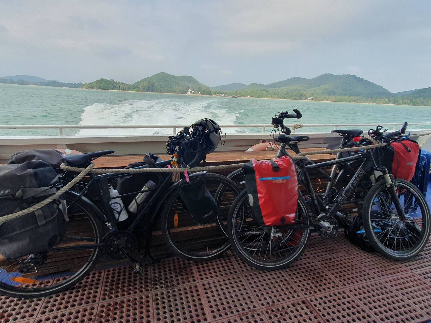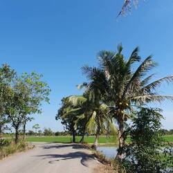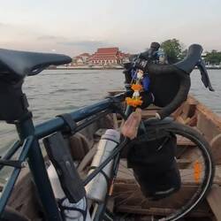 27km de vélo sur une route sympa pour rejoindre le quai pour le bateau. Mauvaise surprise du prix du ticket pour le vélo. 500 vaths au lieu de 100 baths. Très énervée mais pas le choix.