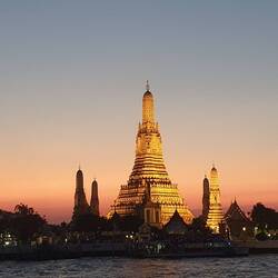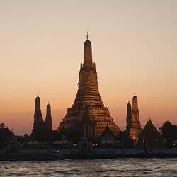 Sur le chemin pour retrouver mon écharpe., le cœur historique et ses.temple couché de soleil sur le Wat Arun.