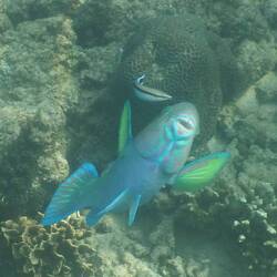 Quelques poissons perroquets, des coraux, des bancs de sardines.