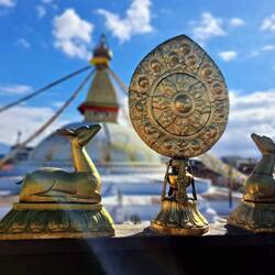 Gegründet wurde die Stupa bereits im 5. Jahrhundert n. Chr. und seither reisen jährlich tausende Pilger*innen aus ganz Nepal, Tibet und weiteren buddhistischen Ländern zur Stupa. Nachdem der Dalai Lama im Jahre 1959 aus seiner Heimat fliehen musste und sich in Bodnath in der Stupa versteckt hielt, ist die Stupa noch wichtiger für die religiösen Pilger*innen geworden.