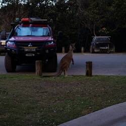 Von uns lagen nun gute 3,5h Autofahrt. Die ersten Stunden auf der Autobahn, gesäumt von wechselnder Natur (Urwald, Ozeanarme und Mangroven) . War die letzte Stunde von immer schlechter werdenden Straßenbedingungen begleitet. Der letzte Teil der Gravelroad nur gerade so schneller als Schrittgeschwindigkeit, folgte die Belohnung doch auf dem Fuße. Der Diamond Head Campground. Direkt hinter den Dünen mit überall Kangaroos zwischen den Campern, die friedlich ihr Gras mampfen. Nach einem kleinen Snack, liegen wir jetzt groggy in unserem Bett und genehmigen uns mit dem Rauschen des Ozeans im Ohr eine Mütze Schlaf.